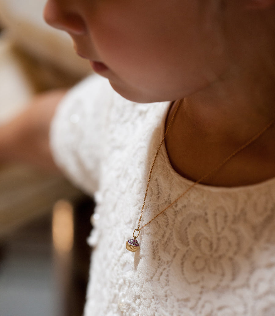 The cutest cupcake miniature featuring 12 diamonds and 23 pink sapphires.
