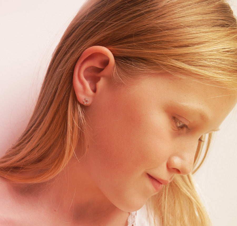 These whimsical stars make a lovely gift for a young girl, or stacked with other studs for a multi-earring look. Approximate size 0.6 x 0.6 cm.